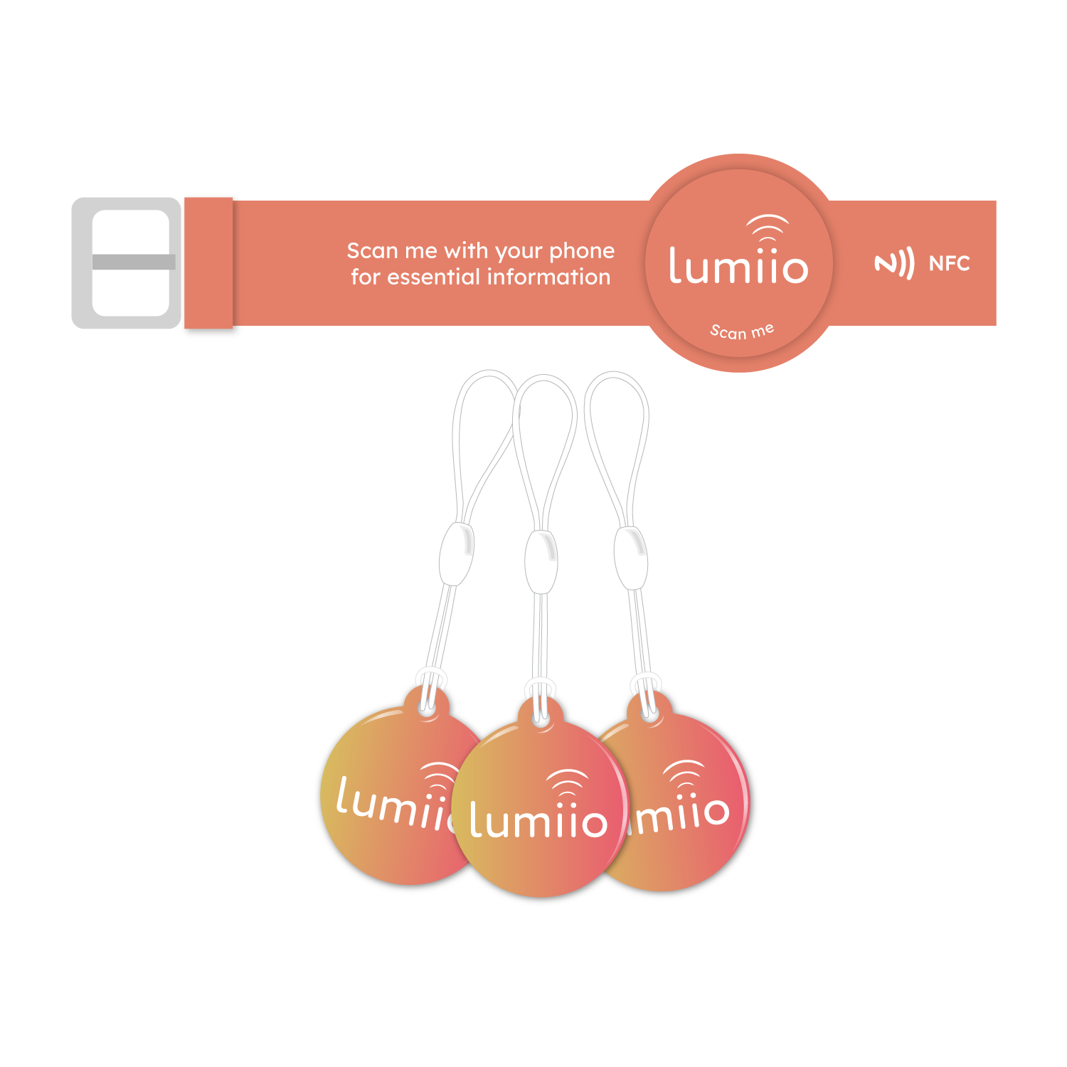 Purchase Lumiio wristbands or hangtags, programme essential personal information to the tag via the free Lumiio app and get started!